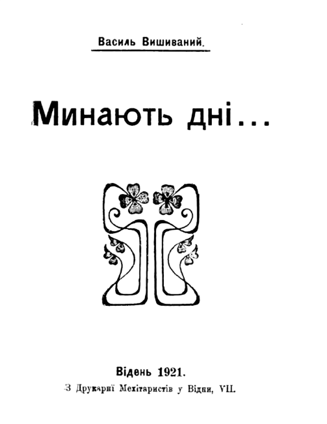 У 1921 році побачила світ збірка україномовних поезій Василя Вишиваного «Минають дні…» (23 вірші), яка присвячена бойовим побратимам – українським січовикам: «Борцям, що впали за волю України». Серед опублікованих творів є поезія « До збруї!» – найбільш потужний твір в цій збірці. І через 100 років цей заклик все ще актуальний…